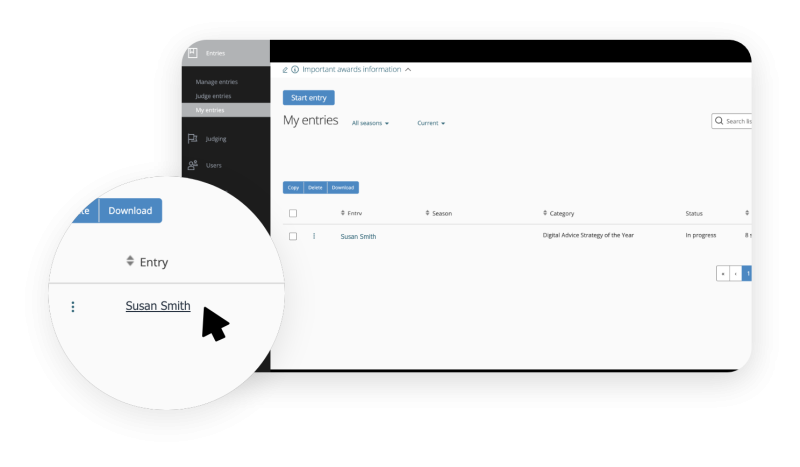 Once you log into the platform, click on the Entries drop down menu on the left hand side of your screen, and click on My Entries