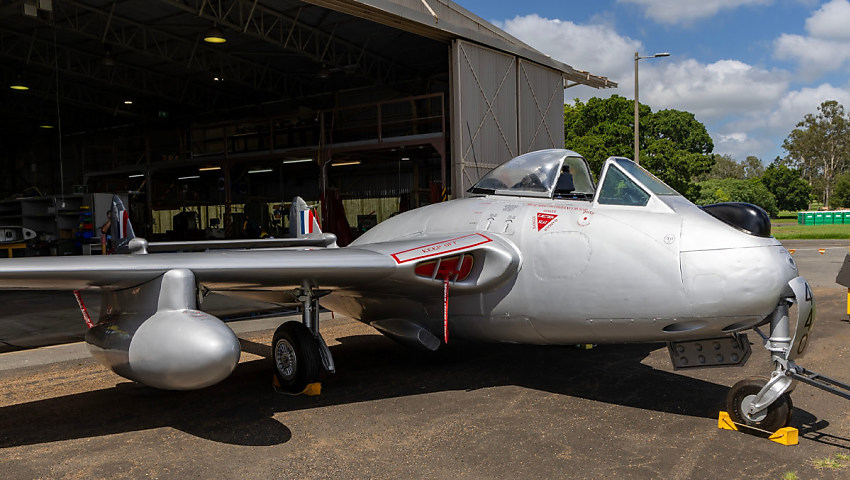 The Royal Australian Air Force has restored a 1950s-era Vampire fighter jet for display at Amberley.