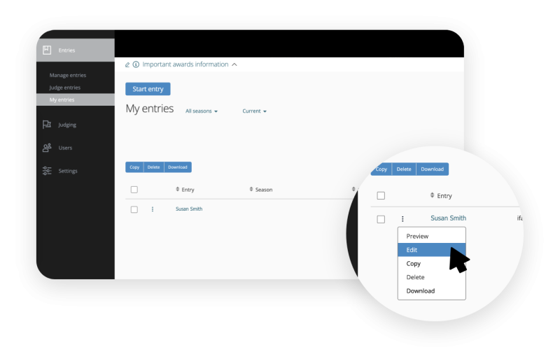 Once you log into the platform, click on the Entries drop down menu on the left hand side of your screen, and click on My Entries
