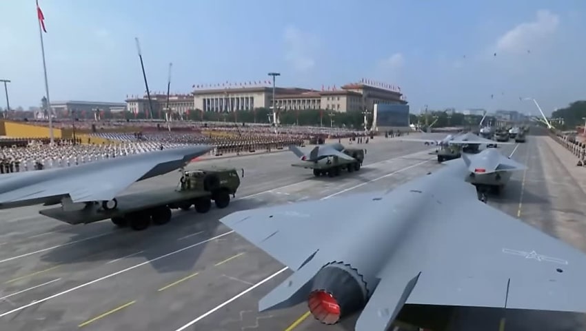 Missiles were a key focus during the parade, as the PLA displayed its first air-launched nuclear missile (the JL-1) alongside smaller JL-3 submarine-launched intercontinental ballistic missiles to complete the nuclear triad.