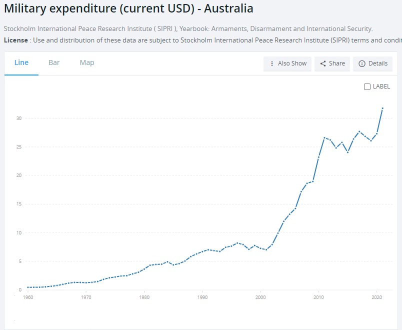 The Australian defence budget has previously reached $48.6 billion or 2.11 per cent of GDP for the 2022-23 financial year; raised from $44.6 billion in the 2021-22 period.