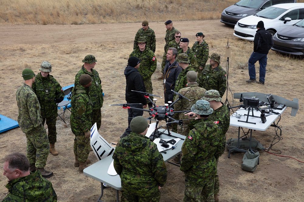 PHOTO: Members of the Canadian Armed Forces and civilians observing drones from the Red Team.