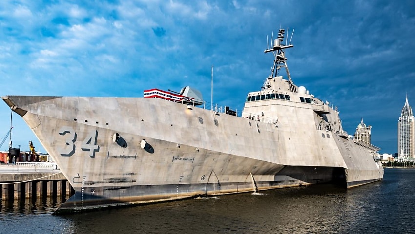 The high speed, shallow-draft Independence-variant aluminium trimaran hull ship will be homeported at Naval Base San Diego after being built by Austal USA in Alabama.