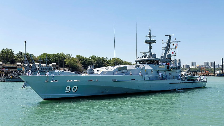 Royal Australian Navy Armidale Class patrol boat HMAS Broome (II) has entered Darwin Harbour for the last time ahead of its official decommissioning later this month.